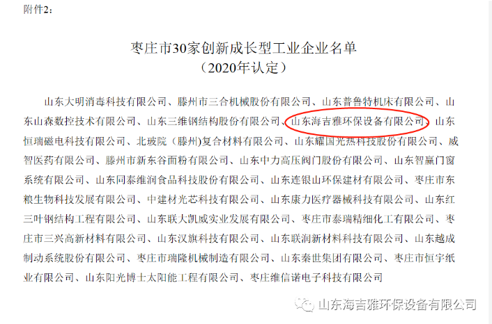 熱烈(liè)祝賀海吉(jí)雅環保被評為市創新成長型工業(yè)企業(yè)